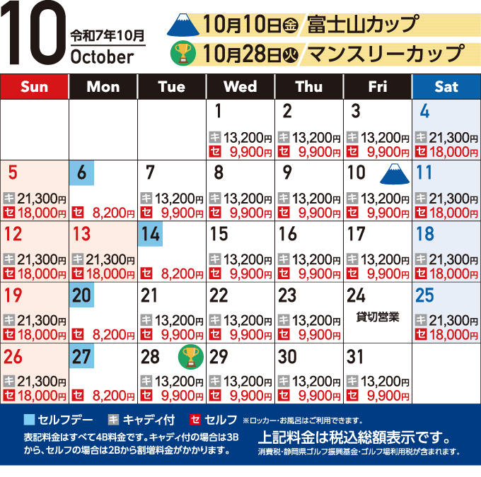 (消費税・静岡県ゴルフ振興基金・ゴルフ場利用税が含まれます。)